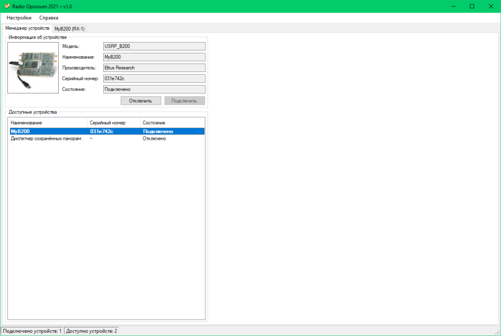 Перечень оборудования (квадратурных приёмников и анализаторов спектра), работающих под управлением программы Radio Opossum 2021, а также реализуемые им функциональные возможности, представлены в таблице 1.